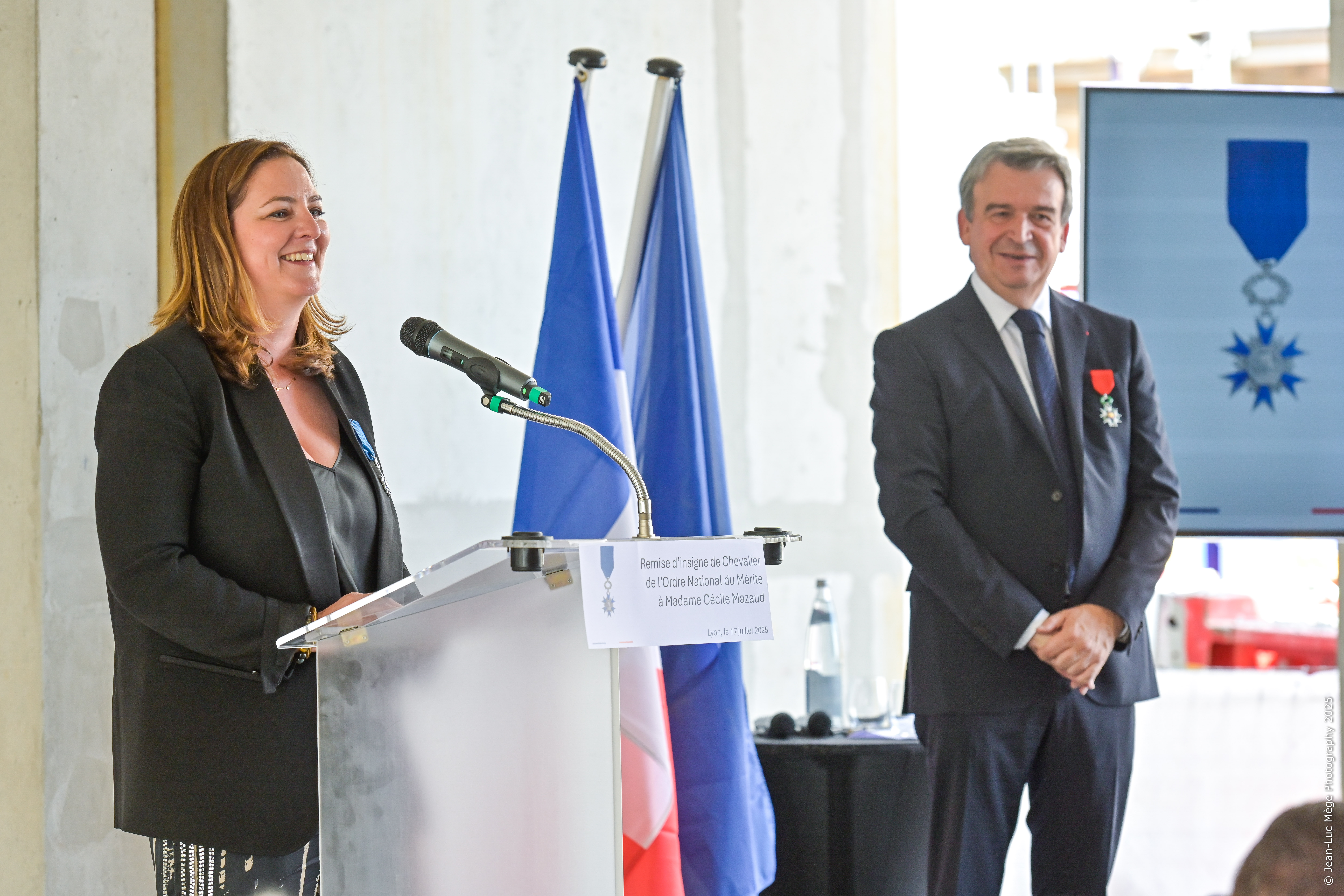 La cérémonie s’est tenue sur le chantier Le Jardin des Balmes, à Lyon. Olivier Salleron, Président de la Fédération Française du Bâtiment (FFB), a remis personnellement l’insigne à Cécile Mazaud. Entourée de ses proches, partenaires, élus et collaborateurs, elle a vu son parcours salué pour sa vision novatrice et son rôle moteur dans la transformation durable du secteur du bâtiment.