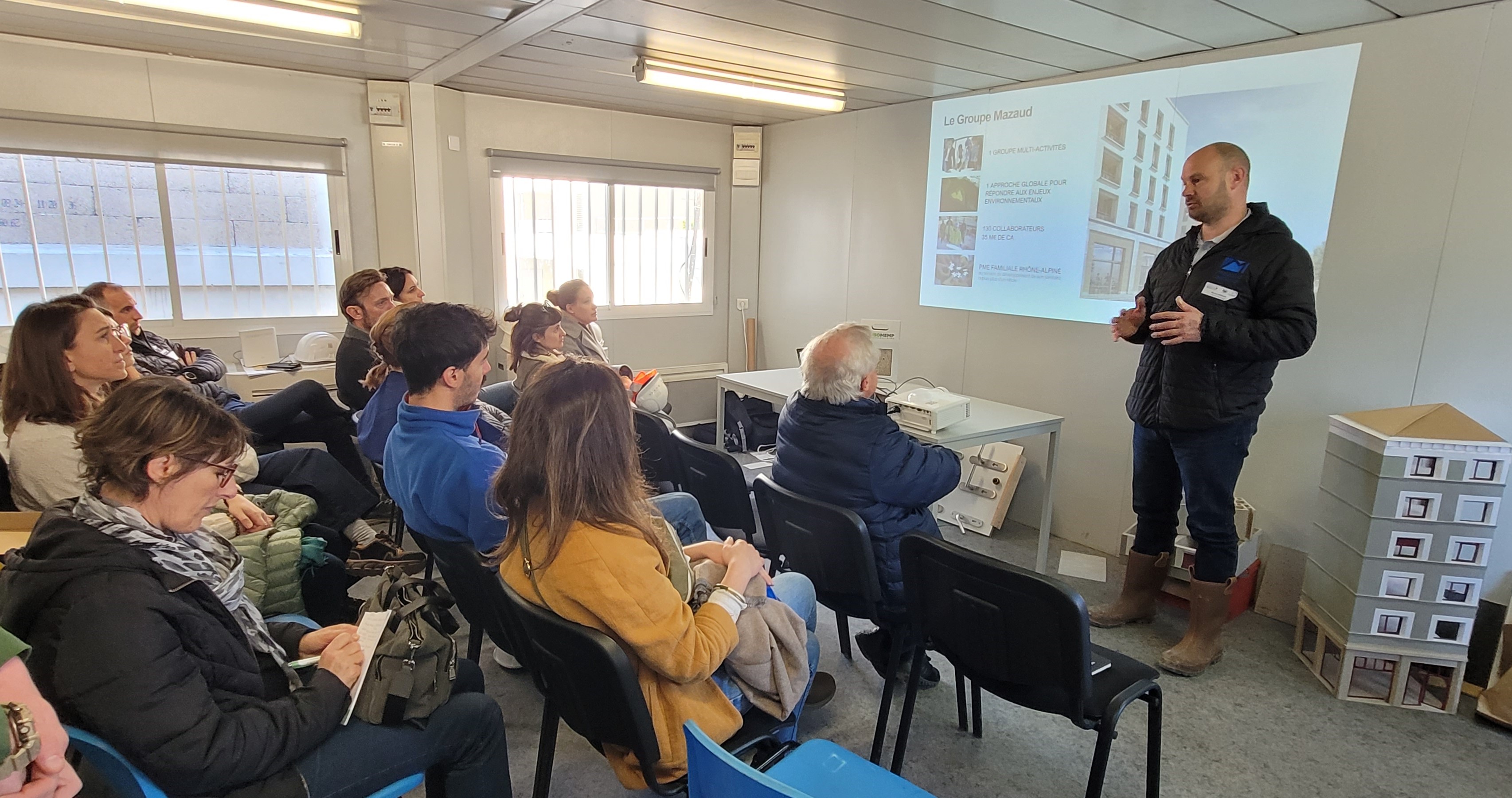 Le 3 avril, le Groupe Mazaud a accueilli les membres du Cluster Eco-Bâtiment sur le chantier La Passerelle, un projet innovant porté par la Fondation ARALIS. Cette visite fut l’occasion de mettre en lumière un chantier engagé, utilisant des blocs de chanvre au delà des exigences règlementaires, nécessitant l’obtention ATEX.